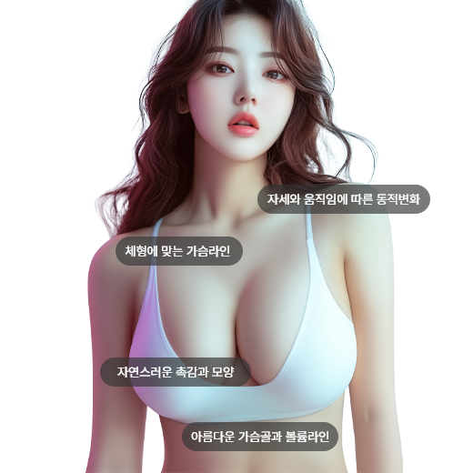 <div class="s_title">나노텍스처로 제작한 고탄성 보형물로 어떤 자세에서나 자연스러운 모양, 촉감 개선</div>