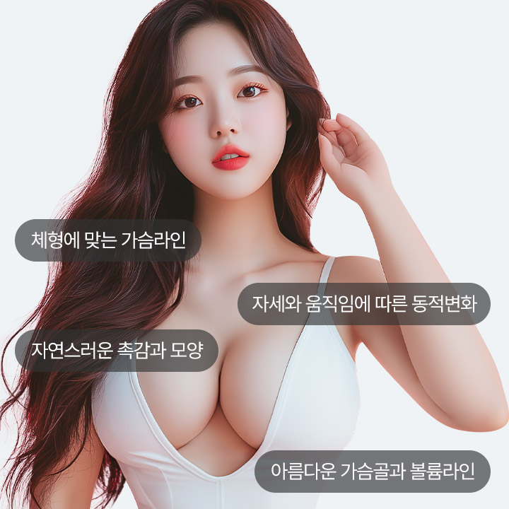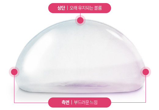 FDA승인을 받은 보형물로 내부 실리콘 겔 충전율을 높여 딤플현상(상단 부분 볼륨 꺼짐)을 최소화한 가슴확대술