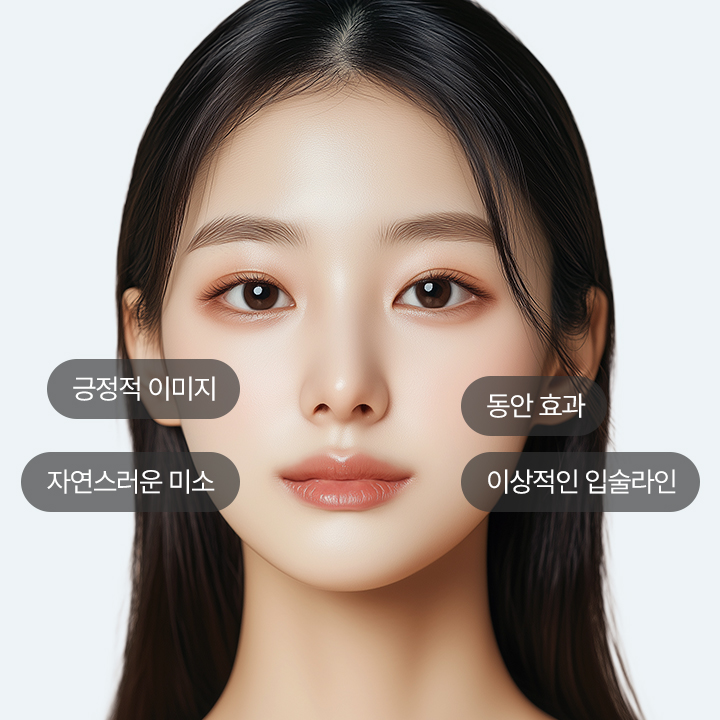 일상생활에서도 긍정적인 인상을 줄 수 있도록 입꼬리 각도, 라인을 교정하여 얼굴형과 조화로운 라인을 만드는 입꼬리수술
