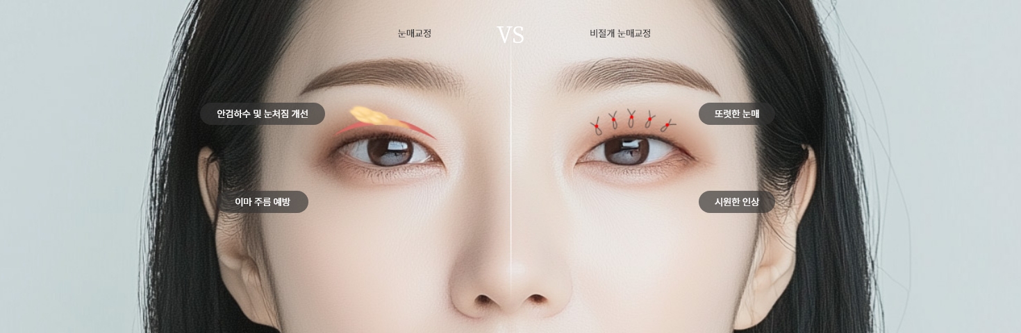 합니다. 눈이 졸려 보이거나 힘 없이 처진 눈매라면, 눈매교정과 함께 쌍꺼풀 수술을 진행하면 더욱 선명하고 또렷한 눈매를 만들 수 있습니다.