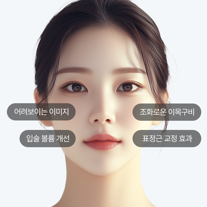 더 어려보이는 효과인중 길이가 축소되면서 짧아진 중안부로 어려보이는 효과를 가져옵니다. -