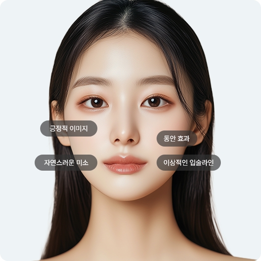 입꼬리수술은 개인에게 맞는 입술의 모양, 얼굴 밸런스, 표정변화 등을 고려한 맞춤 디자인으로 입꼬리 부위를 당겨 자연스럽고 호감가는 입꼬리를 만드는 수술입니다.