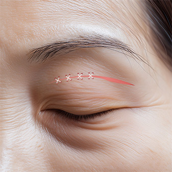 눈꺼풀에 있는 주름살을 따라 절개 후 피부와 근육의 상태에 따라 늘어진 피부를 제거하고 봉합해 줍니다. <br>